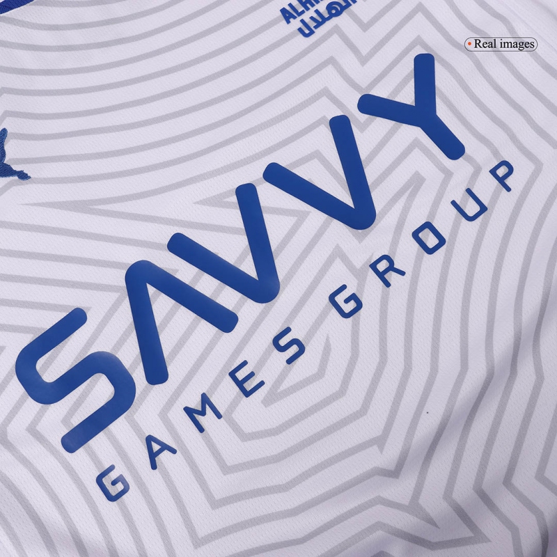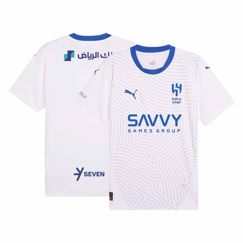 Al Hilal SFC Away Jersey 2024/25 Description about the Al Hilal SFC Away Jersey 2024/25:Unlike the Al Hilal SFC jersey 23/24, this time the colors of the Al Hilal SFC kit were matched together to make the Al Hilal SFC cheap soccer jerseys look cleaner. The Al Hilal SFC jersey maintained the traditional white colour scheme of Al Hilal SFC, with a clean white design and a round blue neckline as embellishment. Dri-FIT technology is carefully engineered into the Al Hilal SFC jersey working hard to wick away from your body to keep you cool and dry in even the match's most intense moments.This Al Hilal SFC jersey will be worn by the likes of Neymar, R