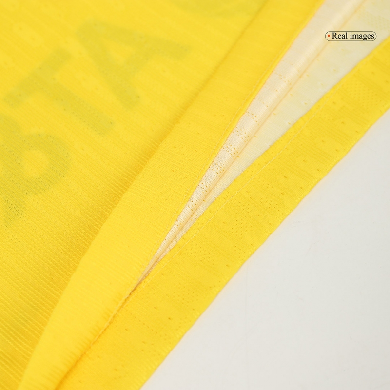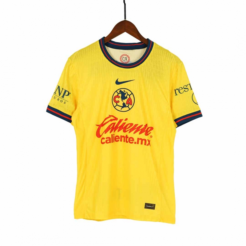Club America Home Jersey Authentic 2024/25 Description about the Club America Home Jersey Authentic 2024/25:Here is the new Club America Jersey Home Authentic 2024/25, Size S,M,XL,2XL,3XL are in stock for purchasing. The Club America jersey features a saturated yellow color instead of the pale yellow color of previous years. The club's original Club America kit's color remained light yellow until 1977 when a more saturated yellow color was introduced. In 1988, the Club America jersey completely switched to saturated yellow and remains the same color until 2014. In the 2014-15 season, Club America returned to a pale yellow color. Now let's talk more about the color on this Club America kit. The color scheme of the Club America jersey for the 2024-25 season is very bold and fashionable, with navy blue and red as the traditional accent colors of the club. Inside the collar is a special red and navy label with the abbreviation CA on Club America jersey.Where to buy cheap Club America soccer jerseys?Gojersey's vision is to offer customers the chance to wear top-quality, affordable Club America jerseys featuring their favorite teams. Like the Club America replica football jerseys, Club America retro football jerseys, and so on. We've also become the preferred choice for numerous wholesalers.We've also become the preferred choice for numerous wholesalers. Furthermore, if you have any question or issue of Gojersey, every customer will be assisted by our 1 to 1 professional customer service via whatsapp and online-chat. By the way, do u prefer more Club America Jerseys? Here are two recommendations for you. Club America Home Jersey 2023/24, Club America Away Jersey Authentic 2024/25.Details: