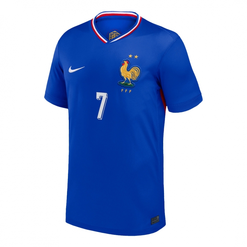 France Home Jersey EURO 2024customer review: Description about the France Jersey:The overall design of the France jersey of 2024 version is reminiscent of the France Jersey of the 1970s, with an incredible navy blue and stylized golden cockerel!The France jersey has a classic and stylish design. It is primarily a