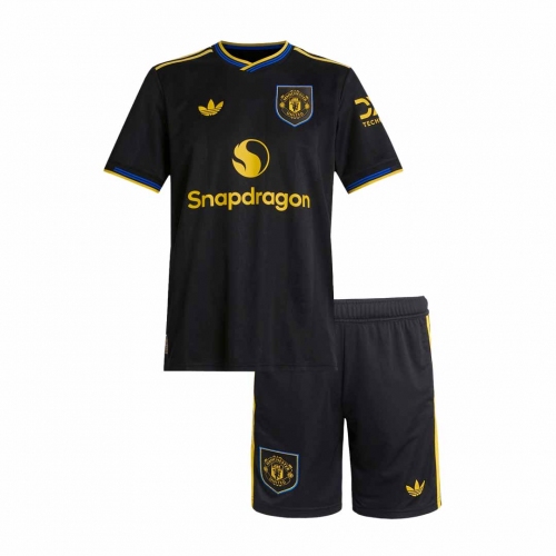 Kids Manchester United Third Away Soccer Jersey Kit 25/26 Black