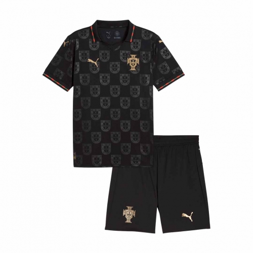 Kids Portugal Special Edition Soccer Jersey Kit(Jersey+Shorts) World Cup 2026 Black